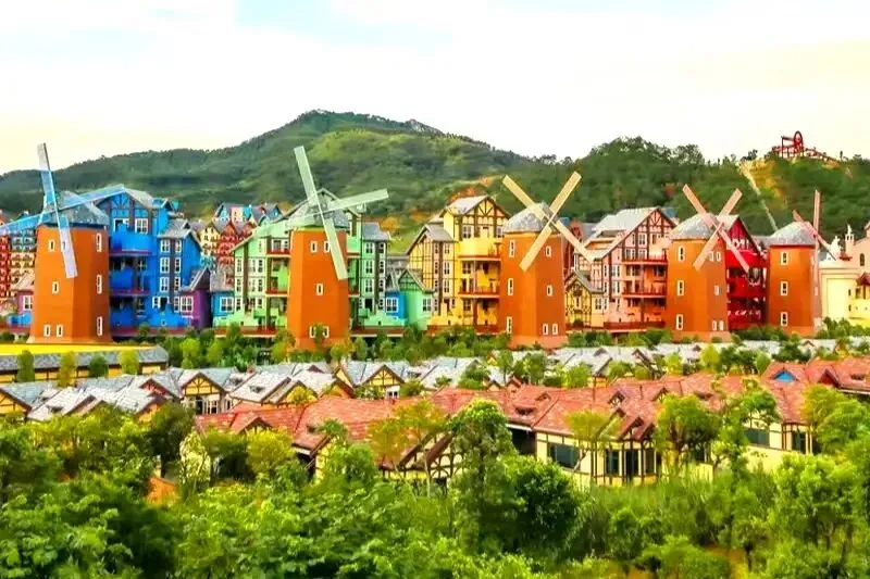 玩法:推荐“客家小镇→玻璃桥→国药温泉”路线,每周六15:00有客家山歌表演;夜场灯光秀以“客家迁徙”为主题,最佳观赏点为“威尼斯水城”沿岸。