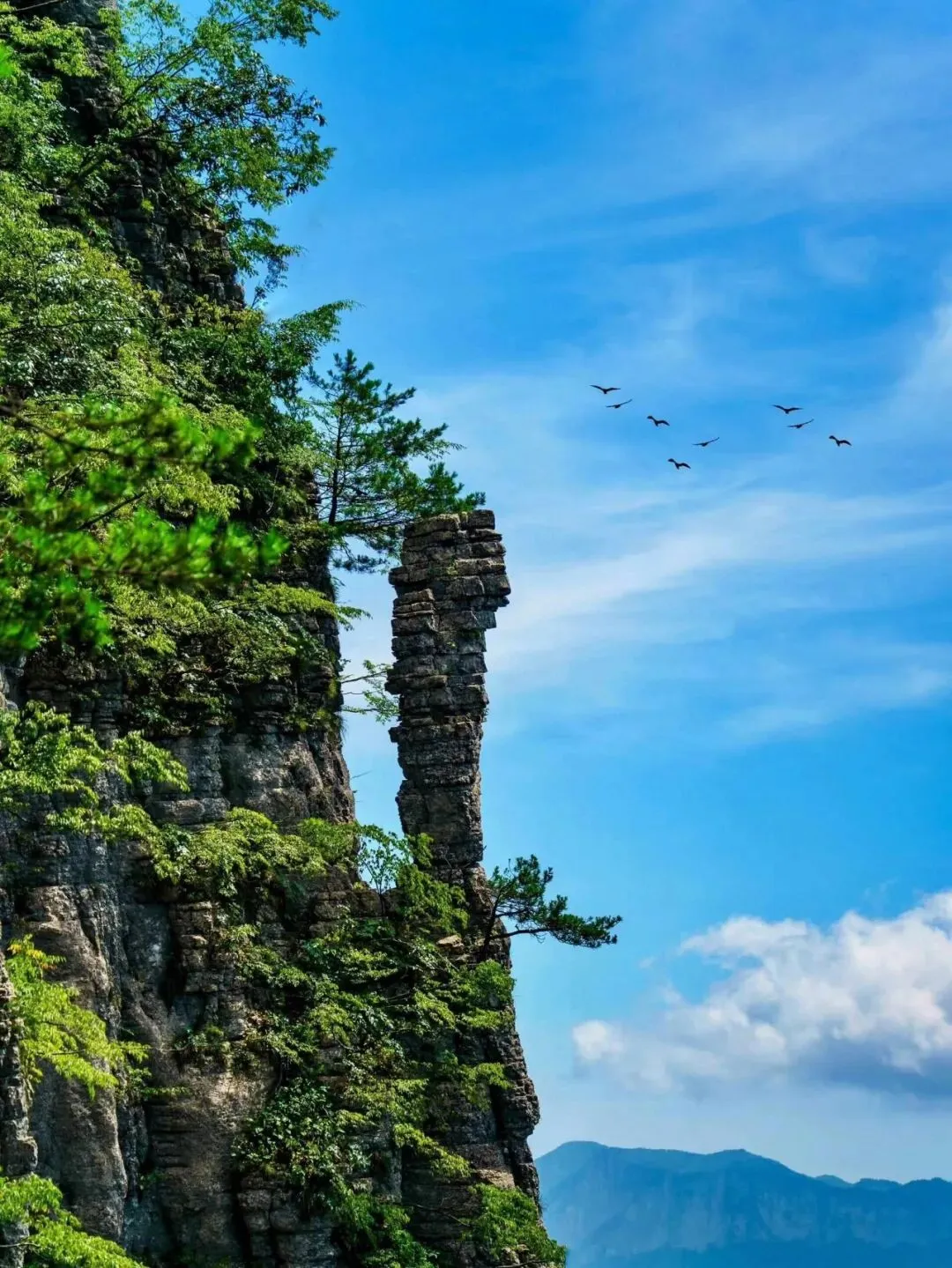 站在“一炷.香”边上.往下看.,腿.有点软。但这钱.花.得.值,.一百多块门票,能看一整天喀.斯特地貌。.记得.穿.长裤,.走云龙.地.缝时,瀑布.的水汽会溅到身上,凉丝丝的.。