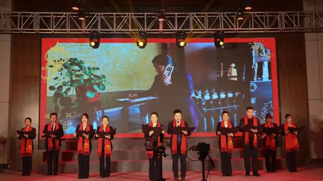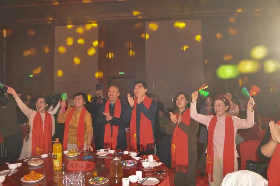 晚会在灵石老年大学静升分校声乐班全体学员带来的大合唱《珊瑚颂》《闪亮的日子》《我爱你,中国》中圆满落幕。激昂的歌声饱含着对祖国的热爱与对未来的美好期许。演出结束后,全体嘉宾与演职人员共同合影留念,定格这一温馨时刻。随后,大家共享了丰盛的晚宴,在欢声笑语中为本次年会画上了圆满的句号。