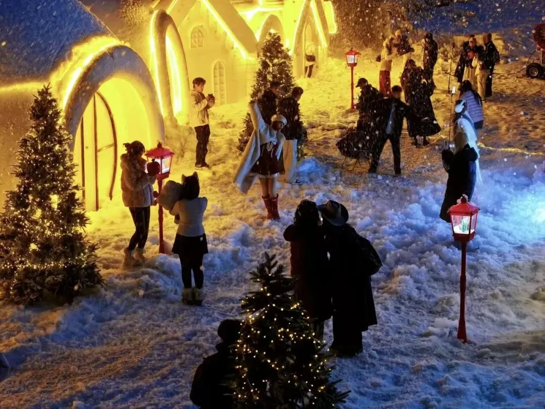 戏雪嘉年华嗨玩雪圈滑雪、打雪仗,网红打卡点红白撞色超出片