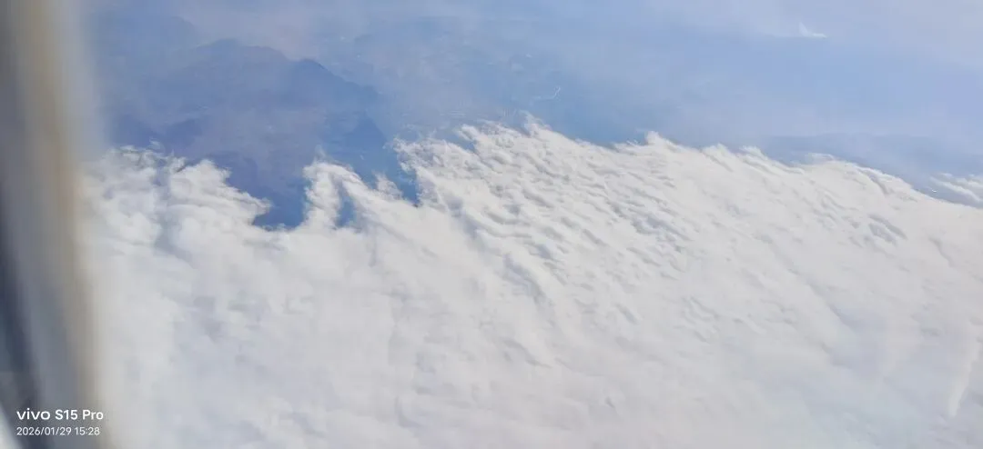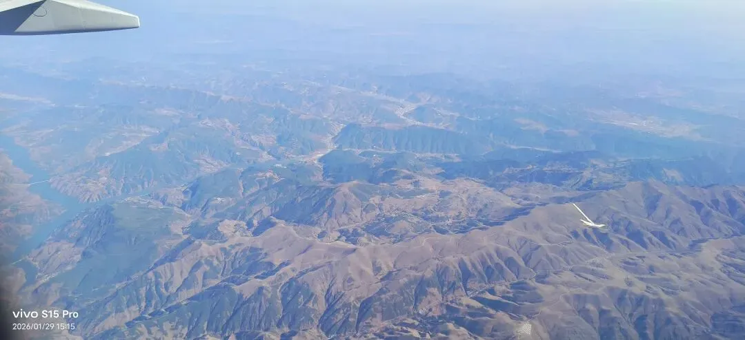 在空中看向窗外,觉得飞机飞得不快呀,和事实也不大相符。看向大地,让我感叹山河的壮丽。
