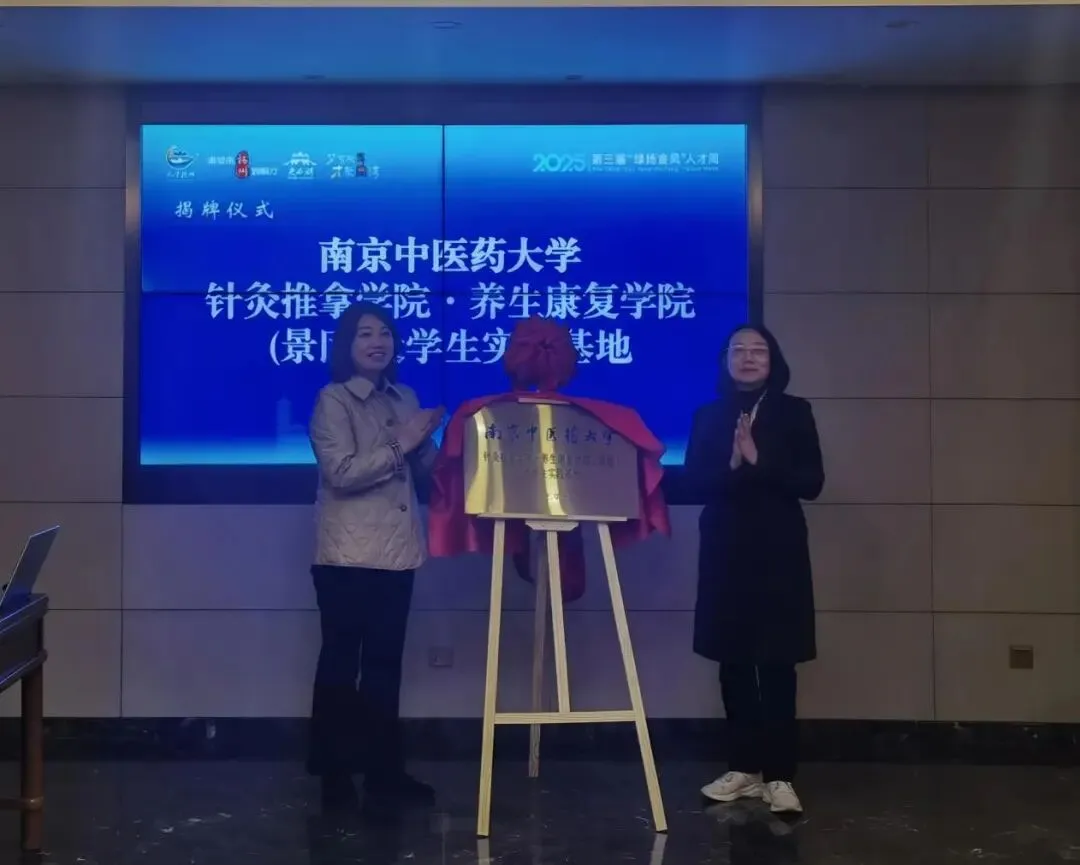 活动现场,景区领导与南京中医药大学院领导分别为针灸推拿·养生康复学院、中医学院(景区)大学生实践基地揭牌。
