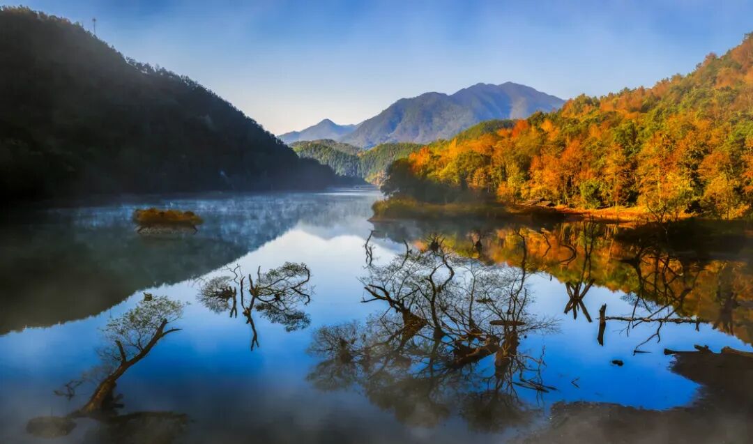 龙源峡景区位处赣北九岭山脉东南端燕山原始森林,距离南昌、九江90分钟车程的相交径内的森林湖泊中,总面积约60平方公里,森林覆盖率超过91%,空气负离子浓度达到一级标准,生物多样性丰富,拥有多种珍贵树种和野生保护动物。龙源峡素有“东方亚马逊南国九寨沟”的美誉,似一块未经雕琢的璞玉,如世外桃源般的存在。