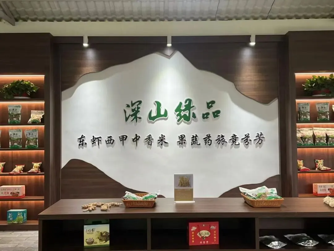 蝴蝶谷一侧,深山绿品体验中心搜集当地特色美馔佳品和山谷奇珍,包括明皇贡茶龙源皇菊、野生攒林茶、深山蜂蜜、山珍野货、生态果蔬等。游客可零距离寻味品鲜,享受大自然的馈赠。