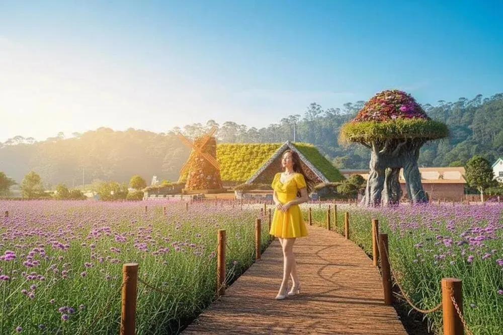 9 - 萬成花村 - 大叻清新花園 (Fresh Garden Đà Lạt): 作為大叻歷史最悠久的傳統花卉種植村之一,萬成花村不僅憑藉其自然美景發展,還和諧地結合了文化,從而為遊客創造了吸引力。