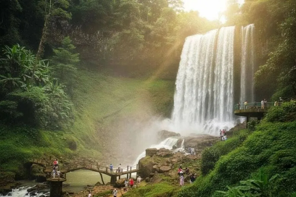 4 - 象瀑布 (Thác Voi): 以其原始、雄偉的美景及與瀑布相關的傳說吸引著遊客。瀑布水流從30公尺高處猛烈傾瀉而下,發出如森林大象咆哮般的聲音。