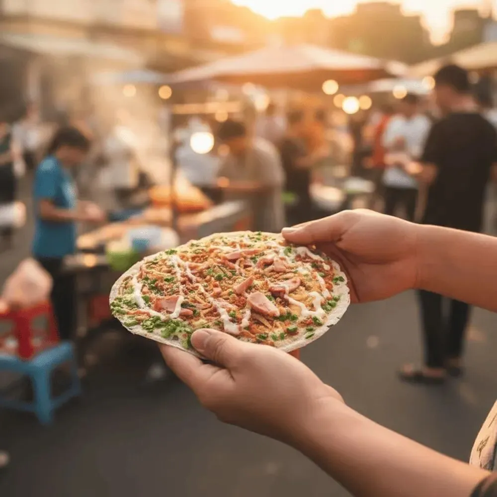 3 - 越式烤米紙 (Bánh tráng nướng): 在炭火上烤製,配料有香腸、牛肉乾、起司、蔥油等。吃起來外皮酥脆,內餡香濃,非常適合在微涼的天氣中享用。