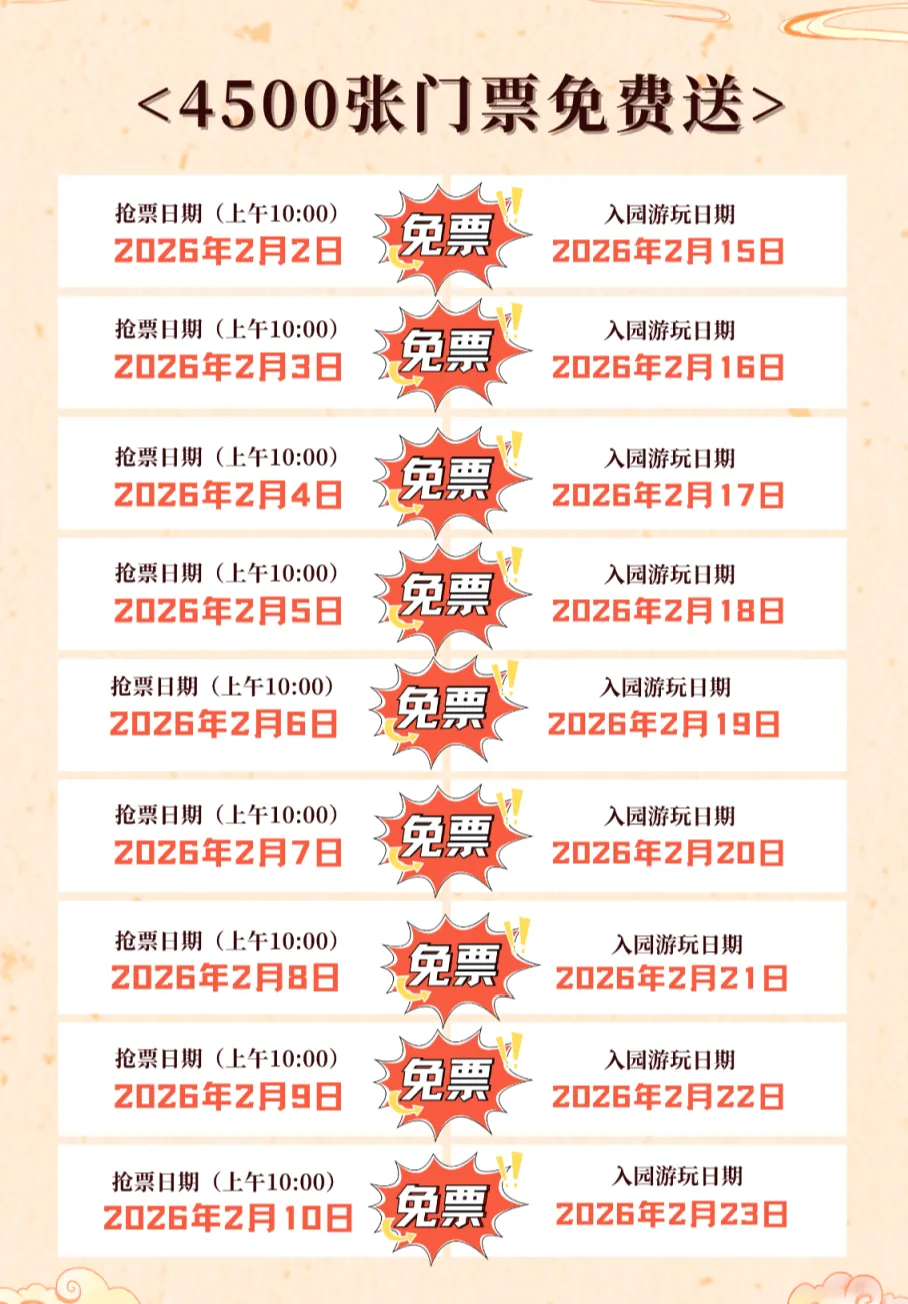✅抢票时间:2026年2月3日-2月11日,共计9天,每日下午14:00