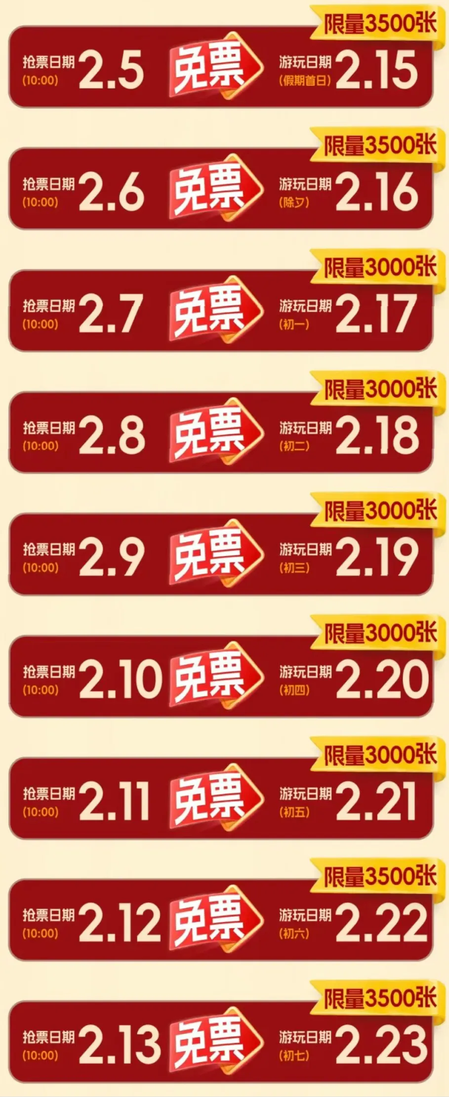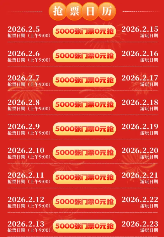 ✅抢票时间:2026年2月5日至2月13日每日上午9:00