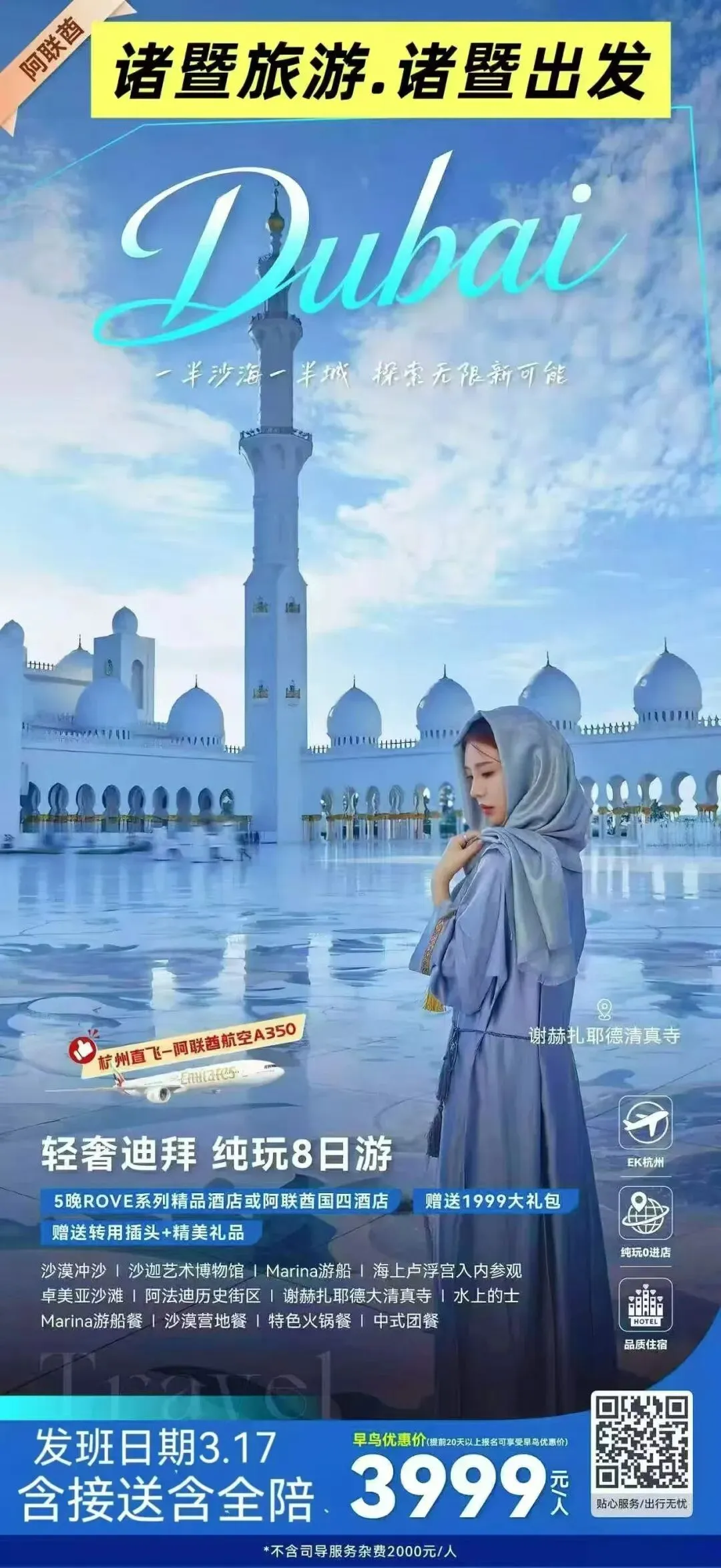 诸暨出发3月17日 杭州EK迪拜 8天