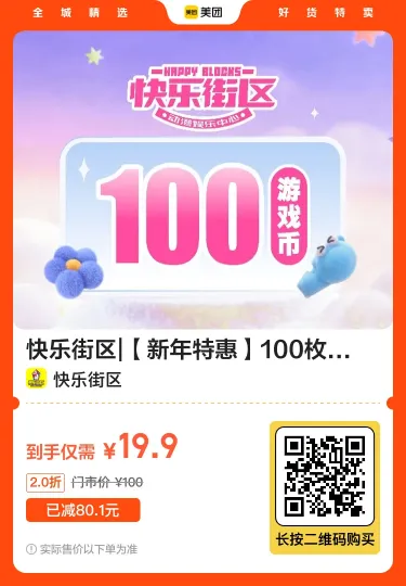 🎁【快乐街区【新年特惠】100枚游戏币】