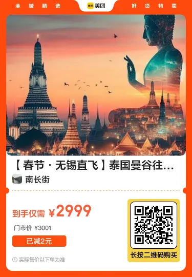 【春节·无锡直飞】泰国曼谷往返单机票·含免费行李额