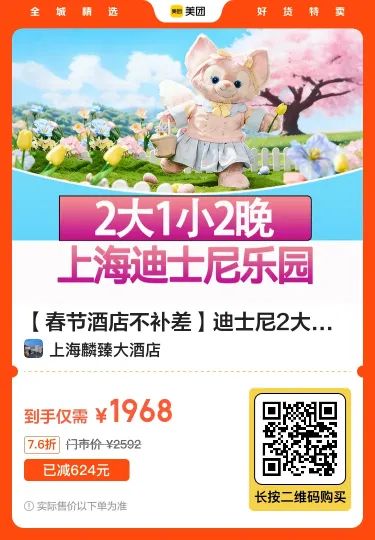 【春节酒店不补差】迪士尼2大1小早鸟票+2晚酒店