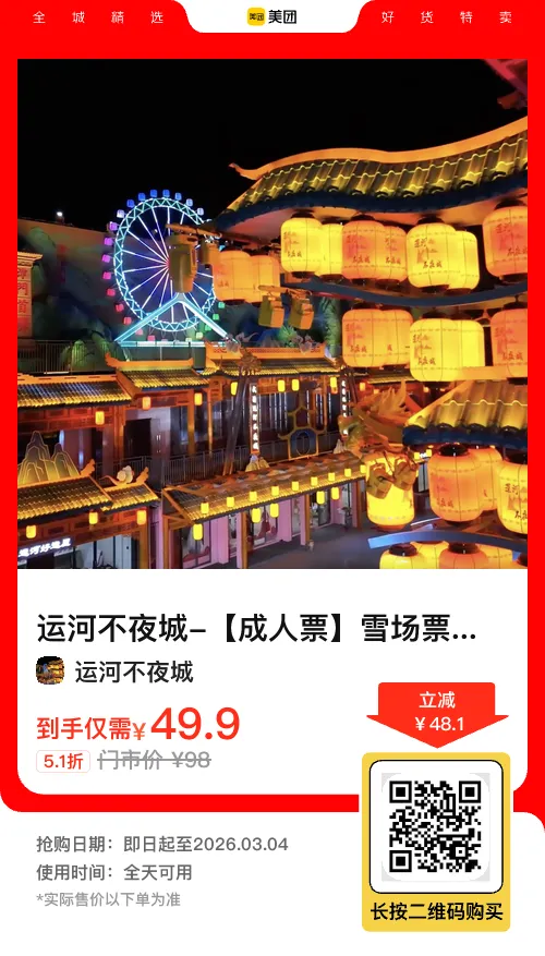 运河不夜城-【成人票】雪场票+冰雪大滑梯票+雪圈畅玩票+皇家大马戏票+沉浸演艺一键解锁票
