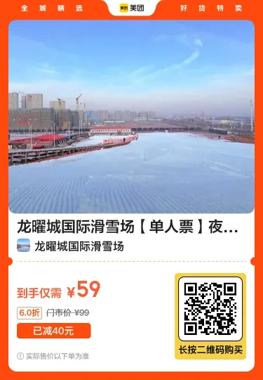 龙曜城国际滑雪场【单人票】夜场滑雪票+雪具