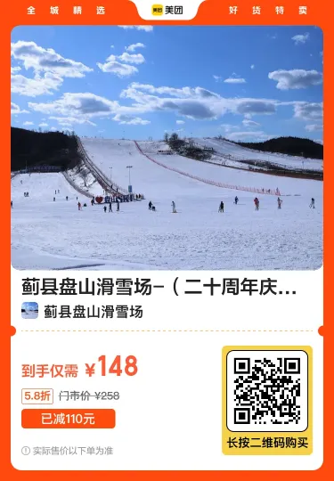 蓟县盘山滑雪场-(二十周年庆)【不限人群票】平日日场滑雪票+雪具6件套