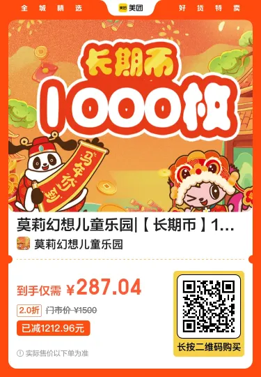 🎁【莫莉幻想儿童乐园【长期币】500枚游戏币】多店通用