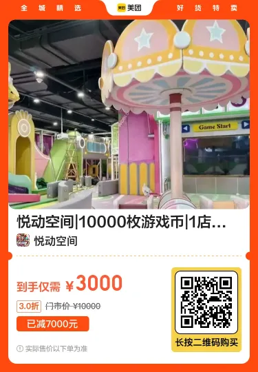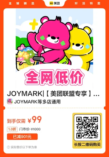 🎁【JOYMARK【美团联盟专享】1000枚游戏币*俩币一抓*拒绝套路】多店通用
