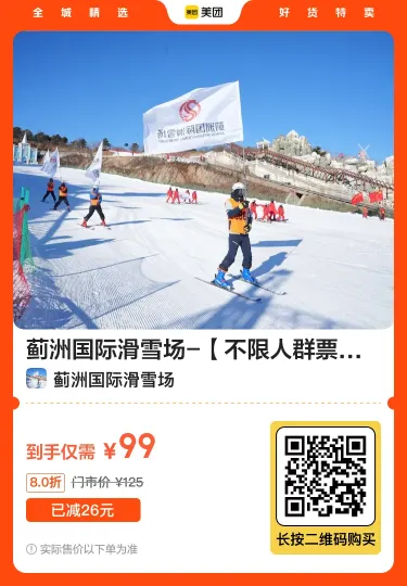 蓟洲国际滑雪场-【学生票】平日日场滑雪票+雪具票