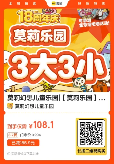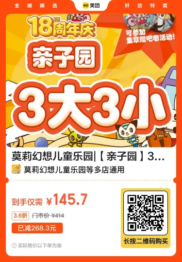 🎁【莫莉幻想儿童乐园【莫莉乐园】3大3小·周末节假日通用门票】