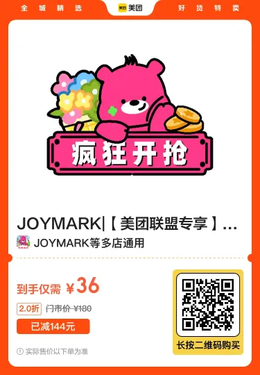 🎁【JOYMARK【美团联盟专享】180枚游戏币*俩币一抓*截图无效】多店通用