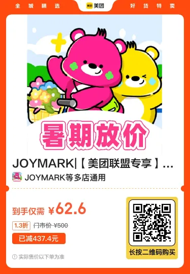 🎁【JOYMARK【美团联盟专享】500枚游戏币*俩币一抓*拒绝套路】多店通用