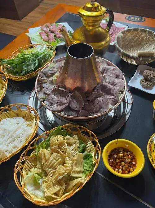 牦牛肉火锅一锅下去就热了,青稞饼蘸酥油更顺。