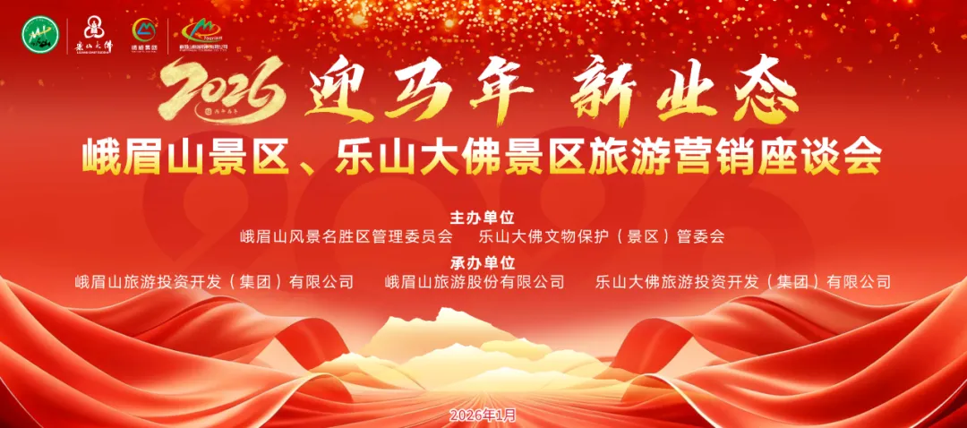 2026年1月30日下午,2026“迎马年新业态”峨眉山景区、乐山大佛景区旅游营销座谈会在成都峨眉雪芽大酒店四楼多功能厅隆重举行。本次座谈会由峨眉山风景名胜区管理委员会、乐山大佛文物保护(景区)管委会主办,峨眉山旅游投资开发(集团)有限公司、峨眉山旅游股份有限公司、乐山大佛旅游投资开发(集团)有限公司承办,旨在加强2026年旅游营销工作,深化景区与旅行社、OTA 平台的合作,推动峨眉山、乐山大佛景区文旅产业高质量发展。