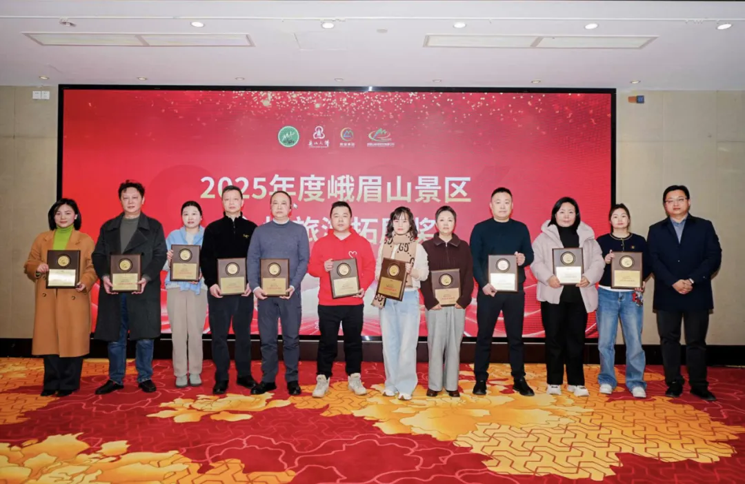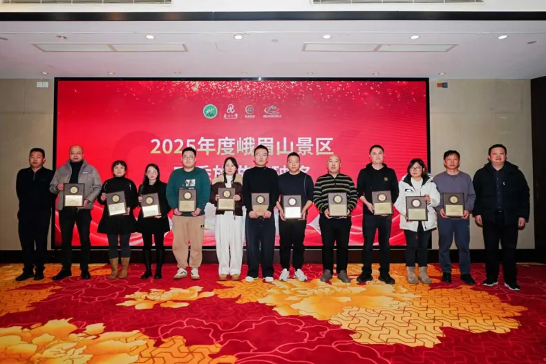 2025 年,峨眉山、乐山大佛景区旅游事业的稳步发展,离不开广大合作伙伴的携手同行与鼎力支持。为表彰先进、鼓舞干劲,座谈会现场举行了隆重的颁奖仪式,为2025年度表现突出的单位及个人颁奖。