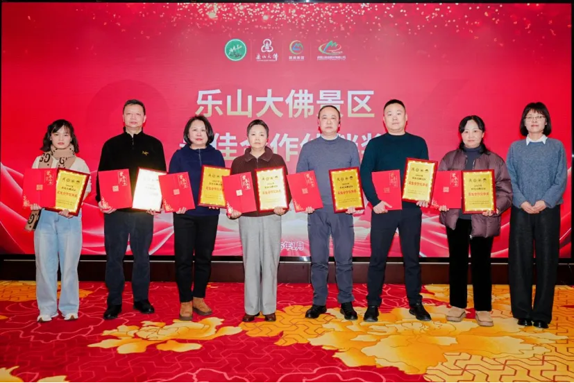 乐山大佛景区也为优秀合作伙伴送上肯定,颁发“最佳合作伙伴奖”,邀请旅行社代表上台领奖。一个个奖项的颁发,不仅是对过去一年合作成果的认可,更凝聚了未来继续携手共进的信心与合力,为后续深化合作奠定坚实基础。