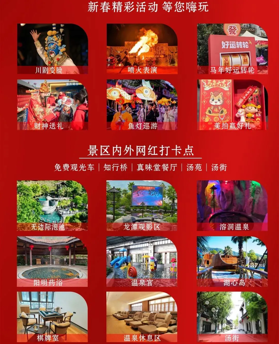 【节】免费嗨玩新春精彩活动(含川剧变脸、喷火表演、马年好运转轮、财神送礼、鱼灯巡游、美拍赢好礼等)具体时间请咨询景区,请以当天实际演出为准。