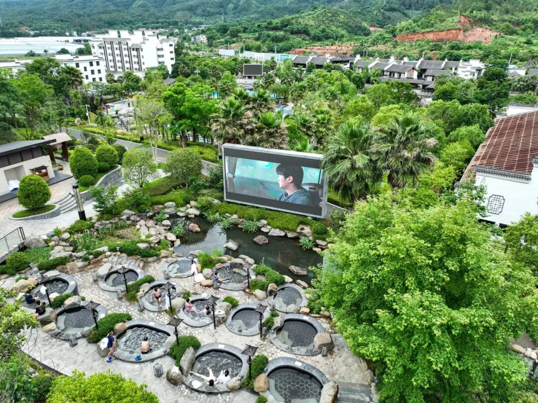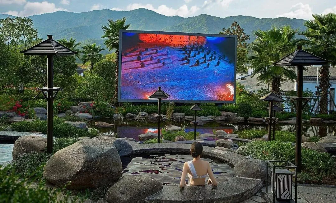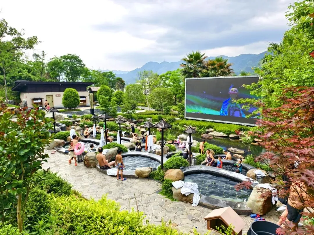 可以一边享受温泉,一边观看最新的影视大片。