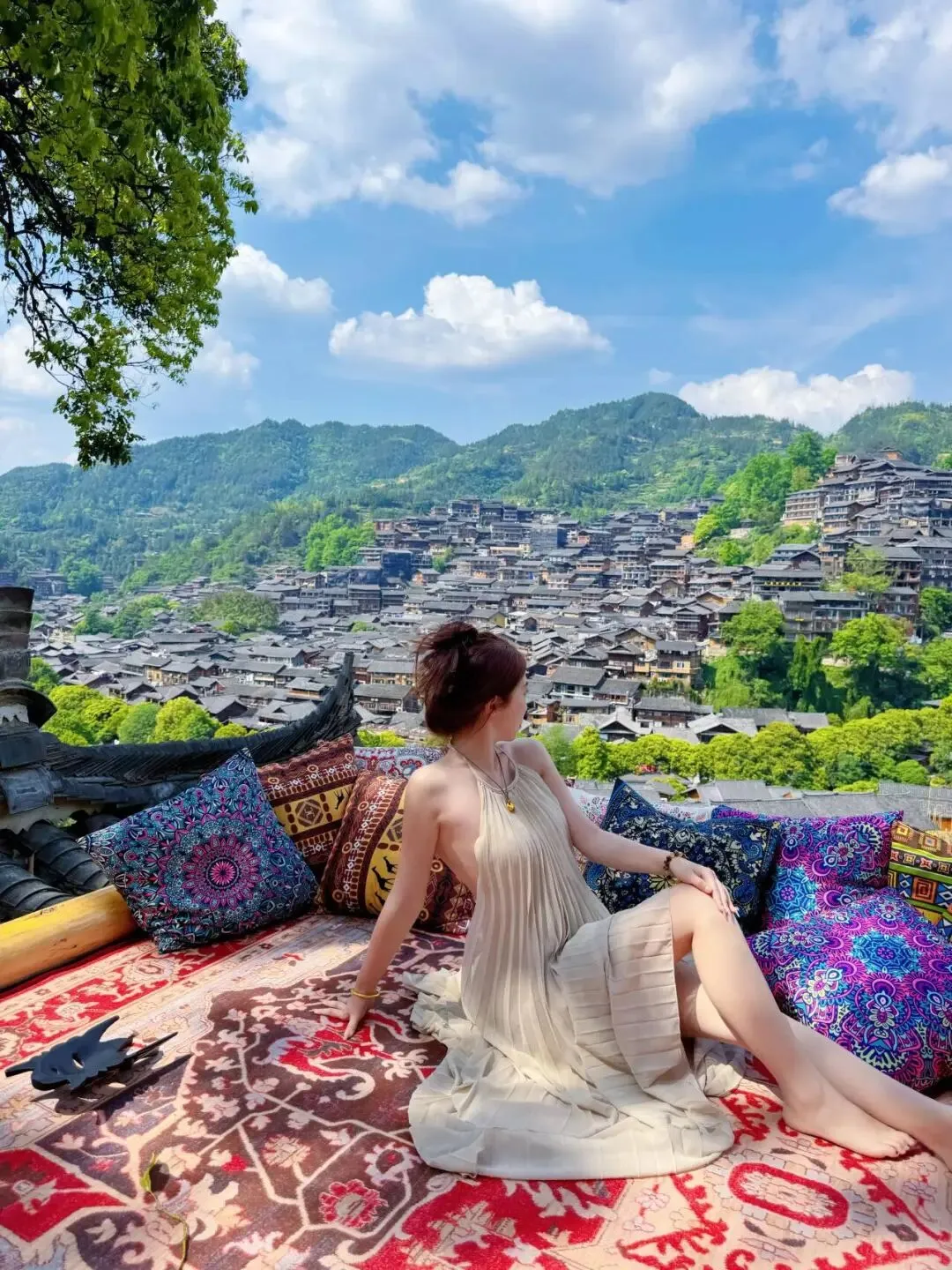 3;西江千户苗寨内:可以住吊脚楼客栈,推窗就是苗寨全景,夜晚能看万家灯火,体验感拉满,但价格稍高,建议住一晚感受。