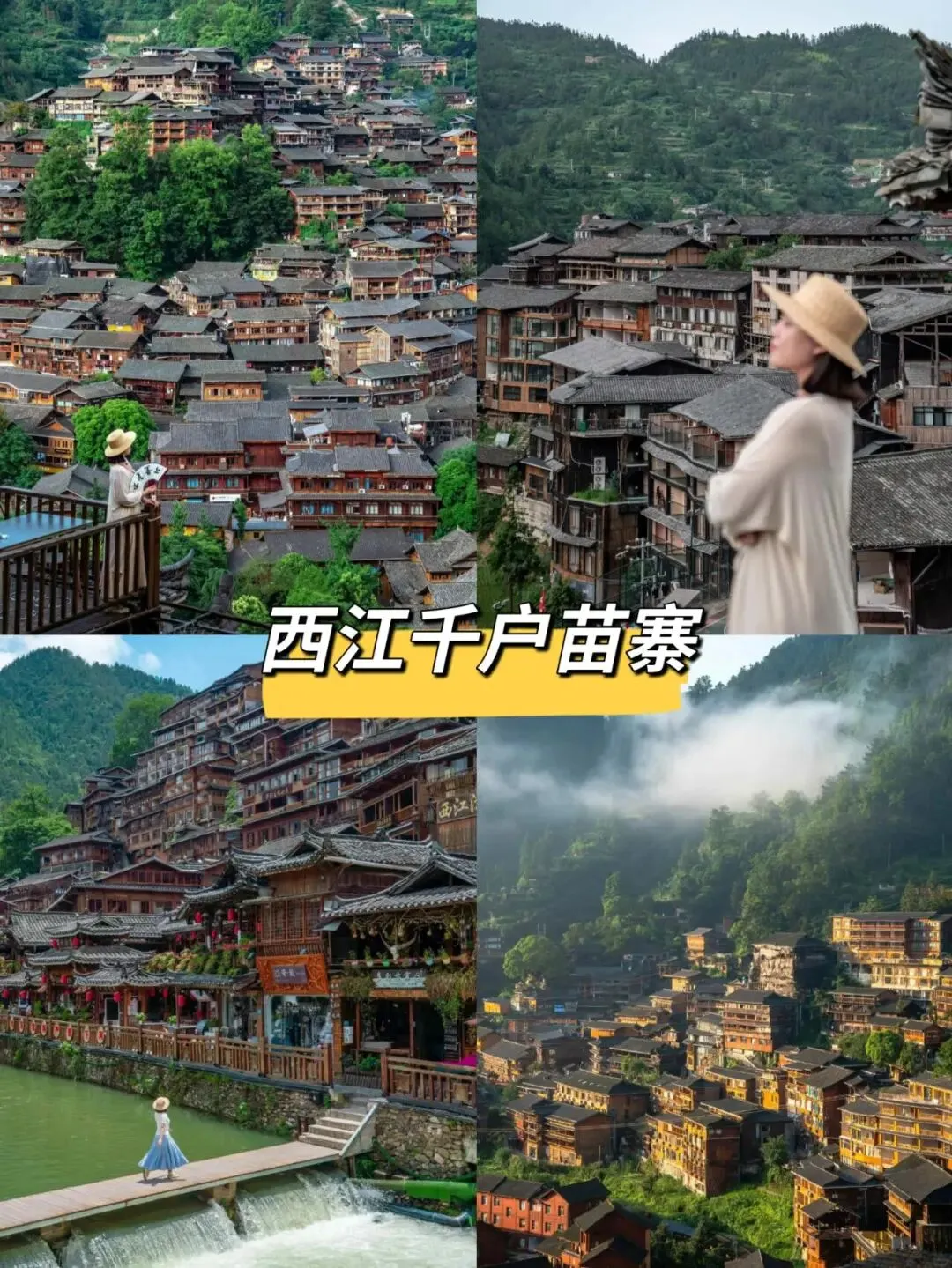 第三天: 🍀游览【西江千户苗寨晨景】,看薄雾漫过吊脚楼,体验苗族拦门酒、长桌宴;下午游中国最美的十大古城【下司古镇】,逛古街、看清水江风光。