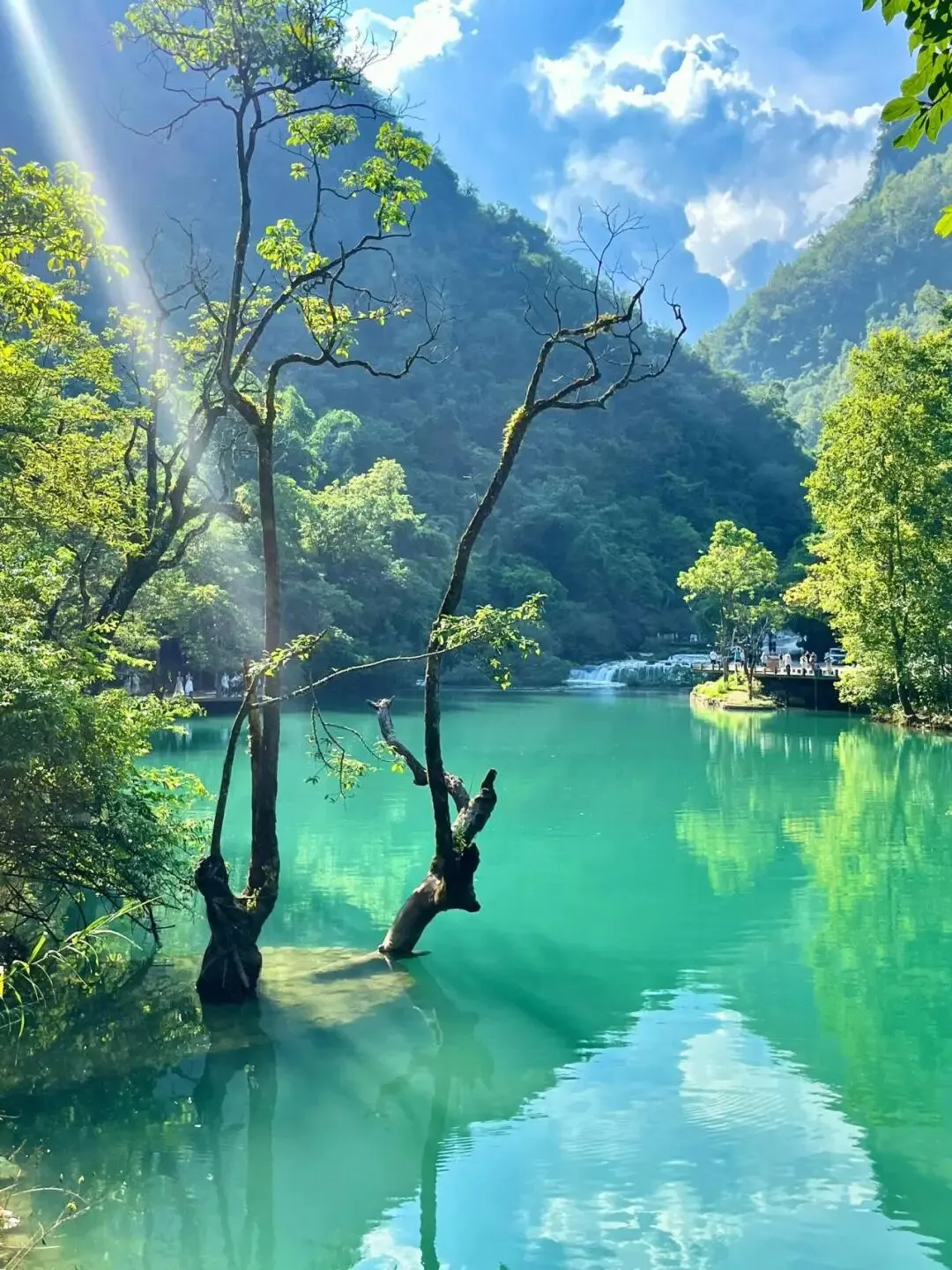 第二天:🍀游【荔波小七孔】,漫步小七孔古桥,看68级跌水瀑布倾泻而下,在鸳鸯湖乘舟穿行于水上森林,感受“天然氧吧”的清新。