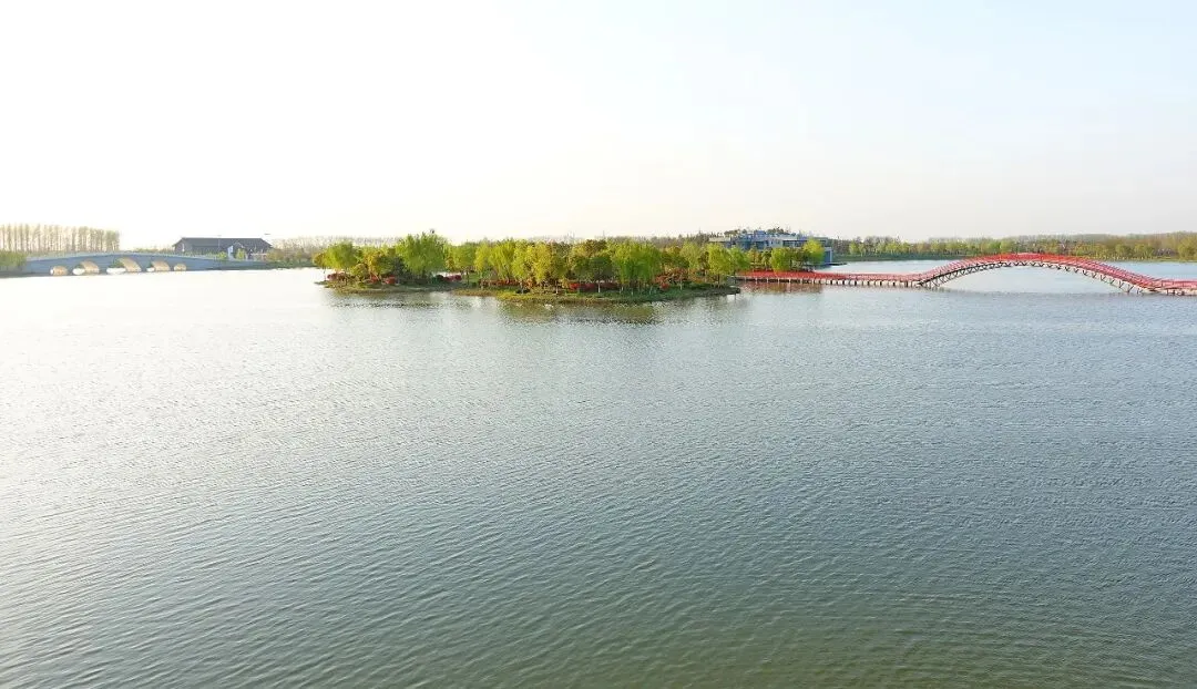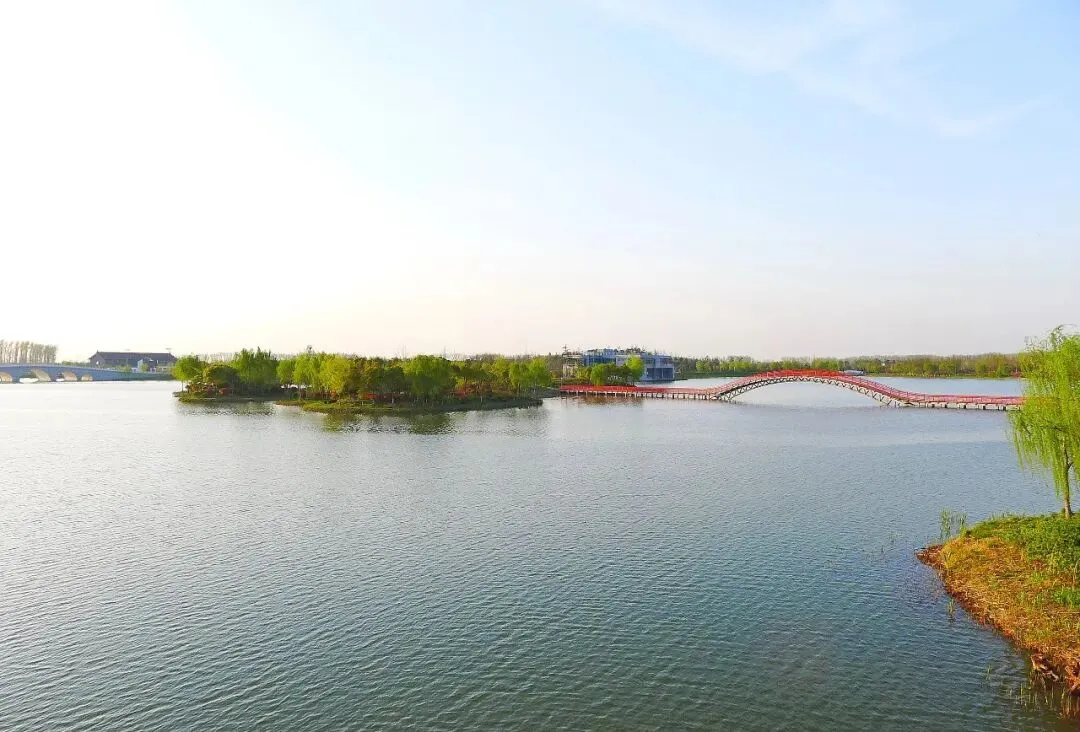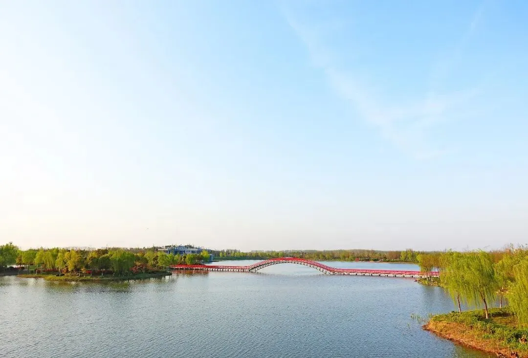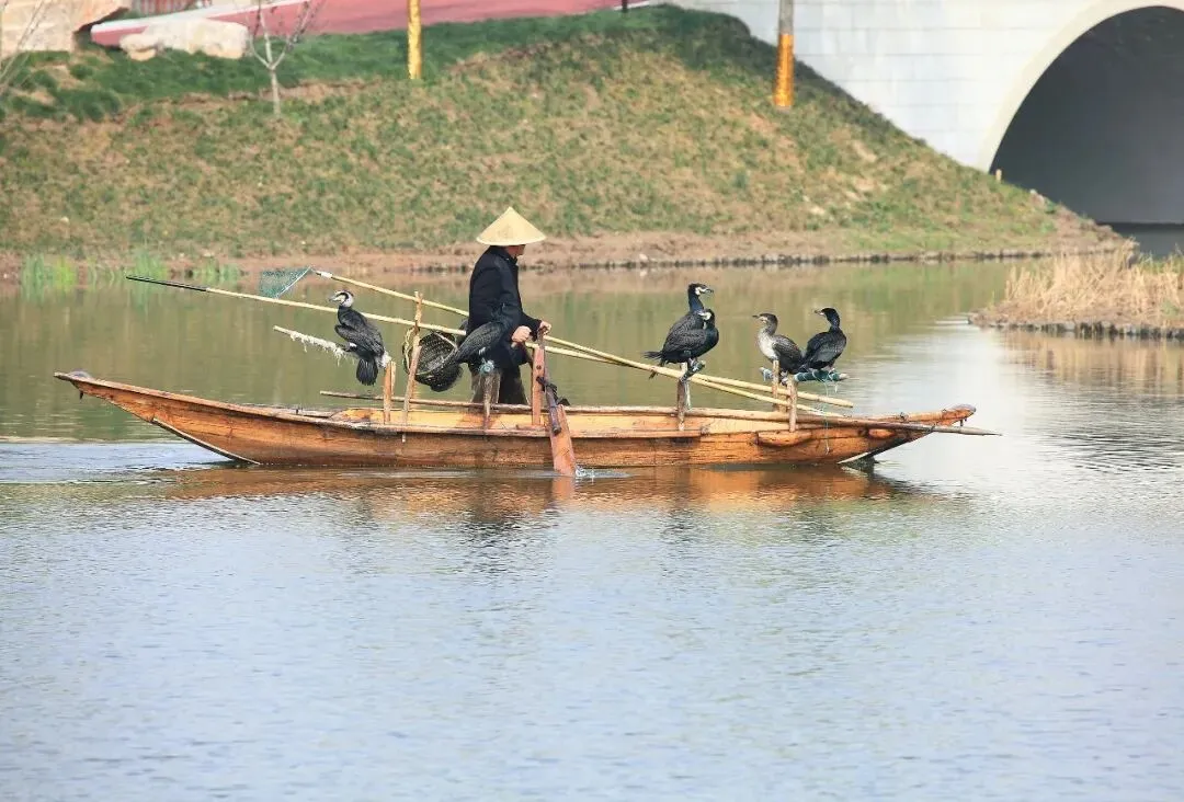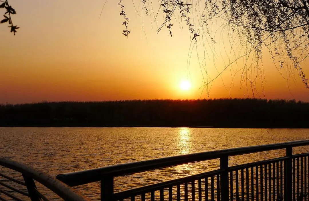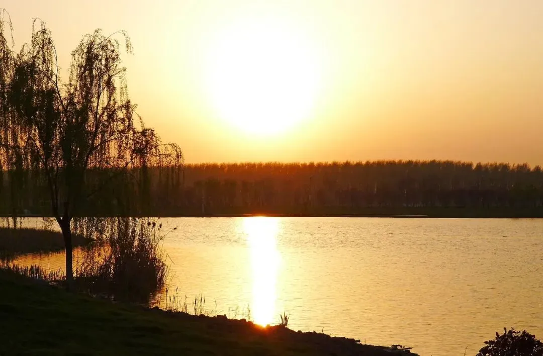 远处,红虹卧波、烟波浩渺,近处,绿树成荫、芳草萋萋。鱼鹰是老演员了,现在没有游客,不需要表演,那就站在架子上休息一下吧,打个盹儿,做个美妙的短梦。湖边杨柳在暖暖的春风中,伸展着它的柔软枝条,在水中来回摆动,像浣衣的姑娘在洗衣,那根根柔韧的枝条,又宛如少女舞动的丝带,在春风中勾勒出曼妙的弧度。