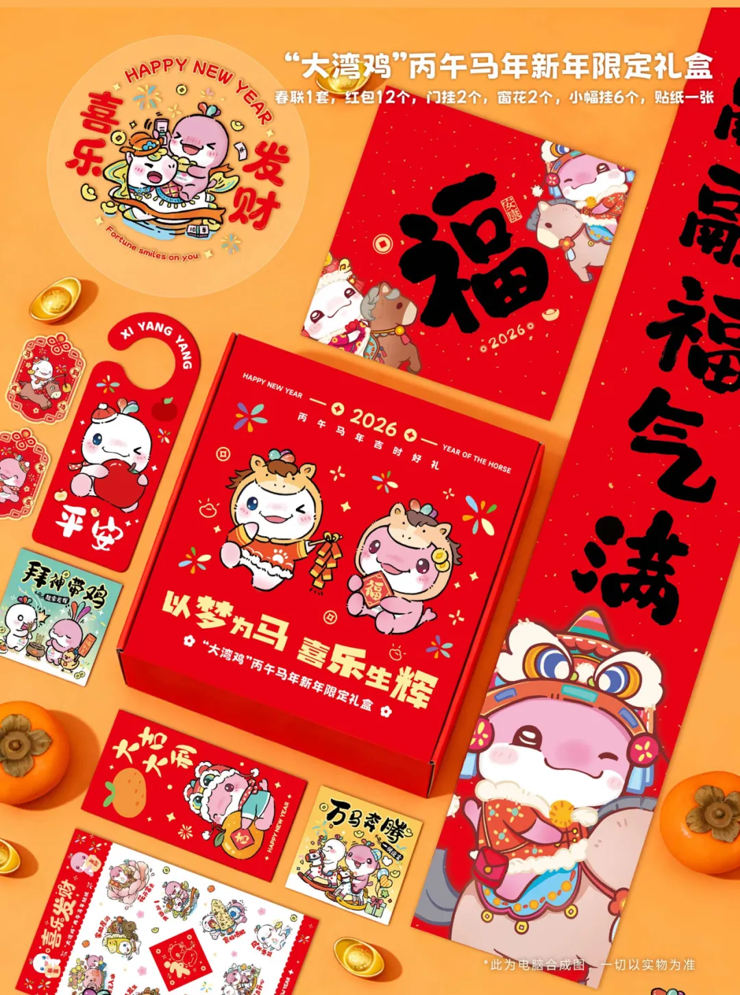 50份“青春深圳”联名“大湾鸡”丙午马年新年限定礼盒(一套含:春联1套,红包12个,门挂2个,窗花2个,小幅挂6个,贴纸1张)