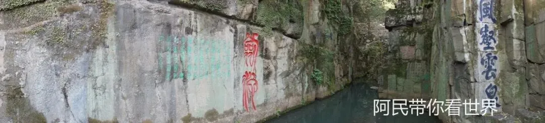 第二绝是剑池,传说吴王阖闾葬在这里,陪葬了三千把宝剑,池水终年不干,崖壁上还刻着颜真卿的“剑池”二字,笔力遒劲,气势磅礴。