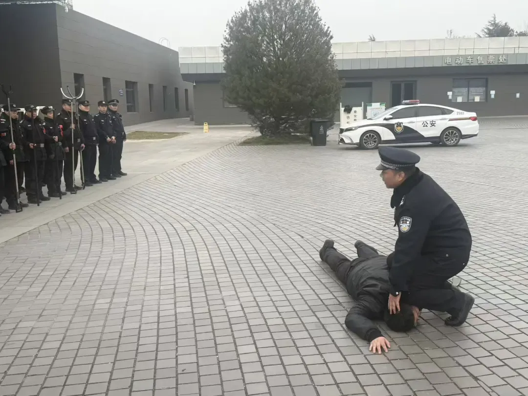工作中,针对景区人员密集、业态多元的特点,秦俑派出所坚持“以练促战、以战践练”,联合秦始皇帝陵博物院景区开展多场景、专业化联合演练,实现练兵与实战无缝衔接。针对春节客流高峰特点,重点组织最小作战单元应急处突演练,详细讲解应急处突流程、人员分工、战术技巧,重点示范防暴盾牌、防暴钢叉、约束带等安防器材的使用方法,确保突发情况第一时间响应、快速集结、高效处置。在消防应急演练中,主要模拟电气线路老化起火场景,指导景区开展初期火情控制、规范开展疏散逃生,同步开展灭火器实操培训,让每一位参训人员都能熟练掌握消防技能。此外,结合景区常见的游客走失、纠纷处置、违禁物品识别等场景,开展针对性演练,不断提升警景队伍的协同作战水平和应急处置能力。