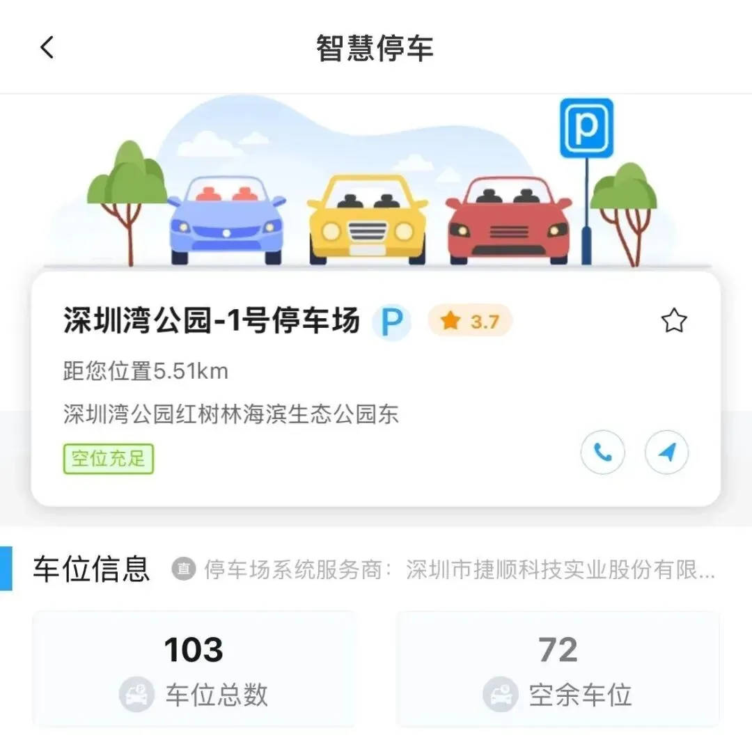 01 按照公告要求, 这两处停车场无论工作日、 周末还是节假日, 车辆都可直接入场停车, 无需提前预约。 打开"i深圳"检索智慧停车就能发现, 这两处停车场的预约通道已正式关闭, 但依旧能实时查询车位总数及空余车位情况, 方便大家提前规划行程。