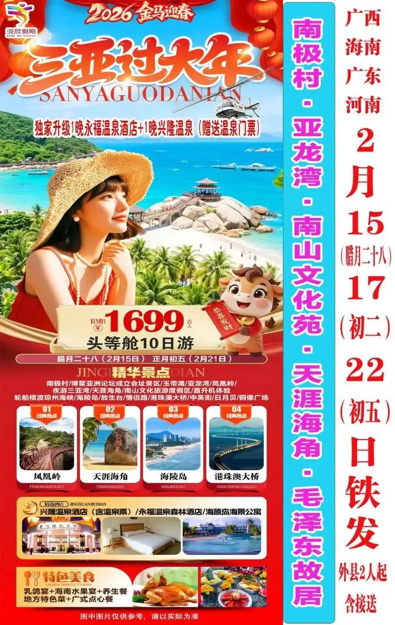 您现在的位置是:首页 > 国内旅游目的推荐 > 正文 国内旅游目的推荐 【20260207】春节旅游线路精选 admin2026年02月07日 21:15:50国内旅游目的推荐12 【20260207】春节旅游线路精选 转载请说明来源于"旅荐网",部分内容转载自网络,如有侵权请联系qlwl@foxmail.com删除 本文地址:https://www.15386.cn/post/96977.html 上一篇 广西旅游攻略景点系列之【三门海】 下一篇 旅游胜地杭州灵隐寺.AT技能.AT制作. 相关文章 #游轮旅行攻略 荆州旅游年卡带你去遛娃!2026 遛娃指南就看这一篇! 标志 #厦门双子塔打卡 #厦门旅游攻略 收藏!2026海南注册旅游公司最全指南:15%所得税+59国免签+入境游补贴,一篇讲透 旅游攻略丨九华山自驾一日游 长春 PPT,实用旅游攻略全流程指南 义乌旅游全攻略:赴一场小商品盛宴,品千年烟火韵味 阜阳旅游年卡带你去遛娃!2026 遛娃指南就看这一篇! 开州区“十五五”文化和旅游发展规划等你来建言献策! 厦门旅游保姆级攻略(附:厦门地铁线路图),值得收藏! 发表评论 取消回复 评论列表 这篇文章还没有收到评论,赶紧来抢沙发吧~