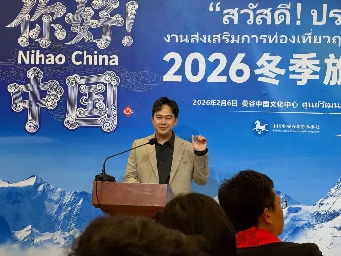 ▼ 4 泰国头条新闻社讯 2月6日,由中国驻曼谷旅游办事处联合泰国出境旅游协会共同主办,银联国际和中国国际航空公司支持的“2026”你好!中国’冬季旅游推介会”在曼谷中国文化中心成功举行。泰国出境旅游协会会长查棱·旺阿纳侬、泰华旅游同业公会会长许荣坤、泰国旅游观光协会秘书长郑楚锦和中国驻曼谷旅游办事处负责人张若愚等出席活动并剪彩。活动邀请了逾百家泰国重点旅行商、主流媒体及知名旅游博主出席,现场气氛热烈,交流踊跃。