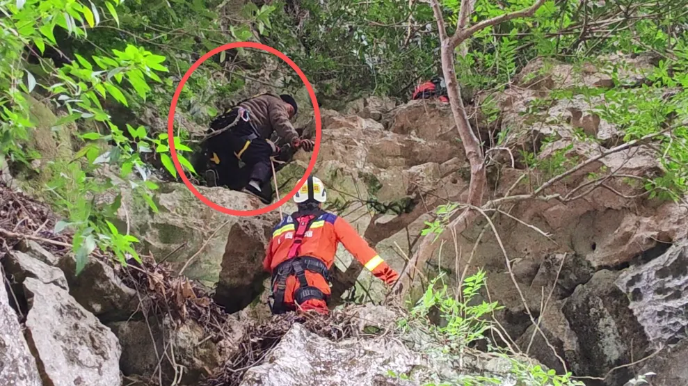 一游客徒手攀崖寻坠落无人机