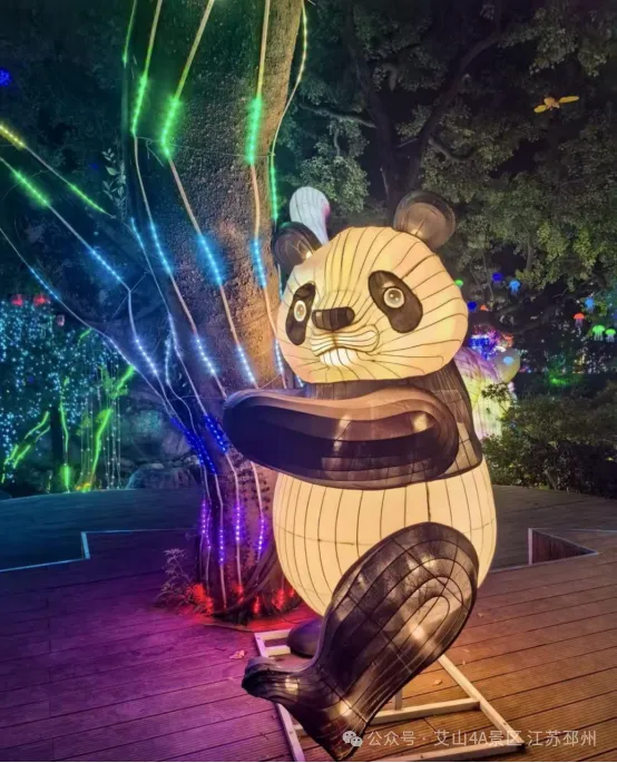 圆润可爱的熊猫灯组,是小朋友的“心头好”!孩子们围着灯组转圈圈,大人们举着手机拍照,暖黄色的灯光把团圆的氛围拉满,让夜游的节奏慢下来,感受独属于亲子时光的温暖。