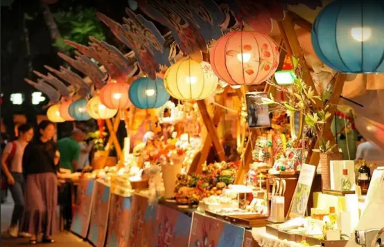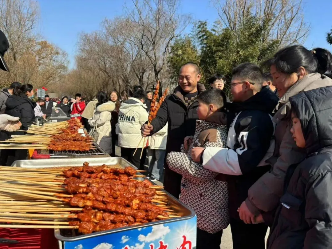 灯展期间,艾山的市集同步开市:热气腾腾的烤红薯、香气扑鼻的关东煮、甜滋滋的糖画……食物的香气在夜色里飘远,人们在摊位间穿梭,聊天声、欢笑声、叫卖声混在一起,把新年的热闹与烟火气,揉进每一个停留的瞬间。