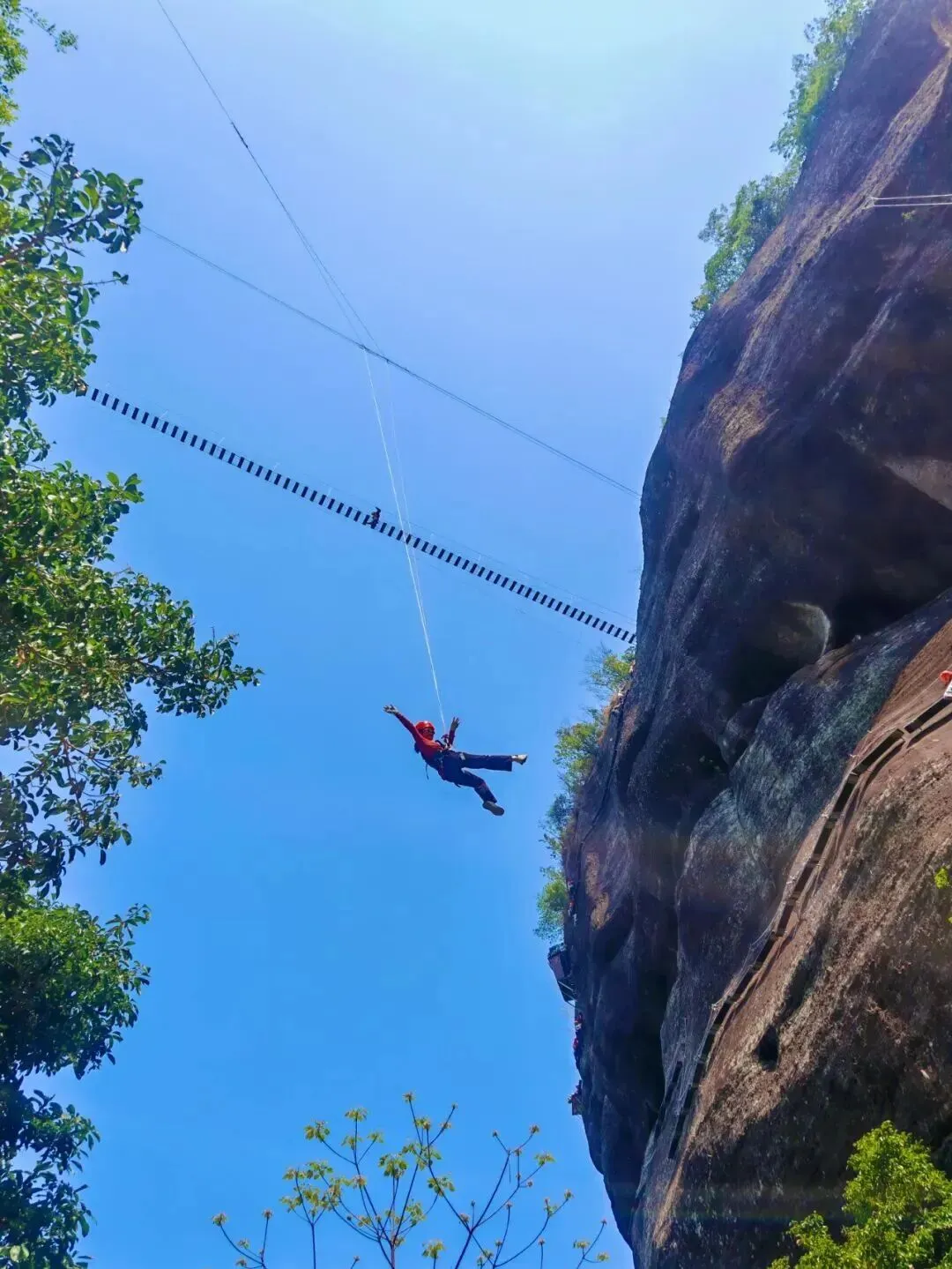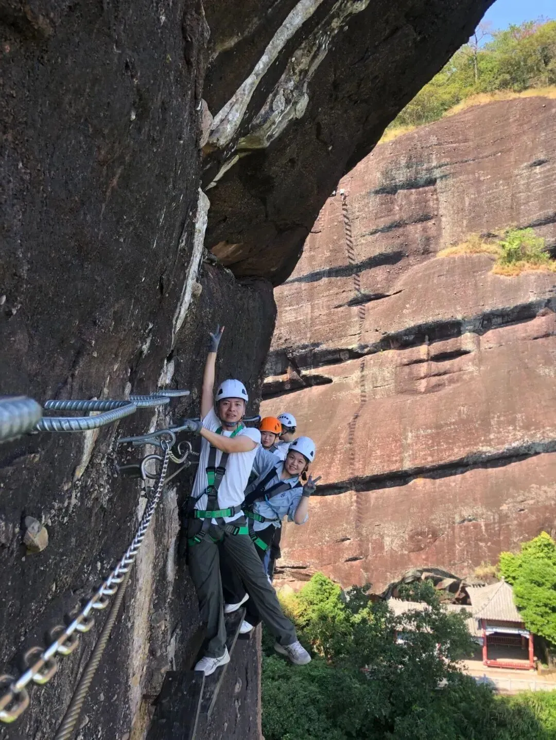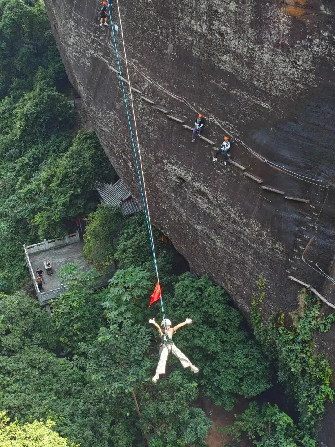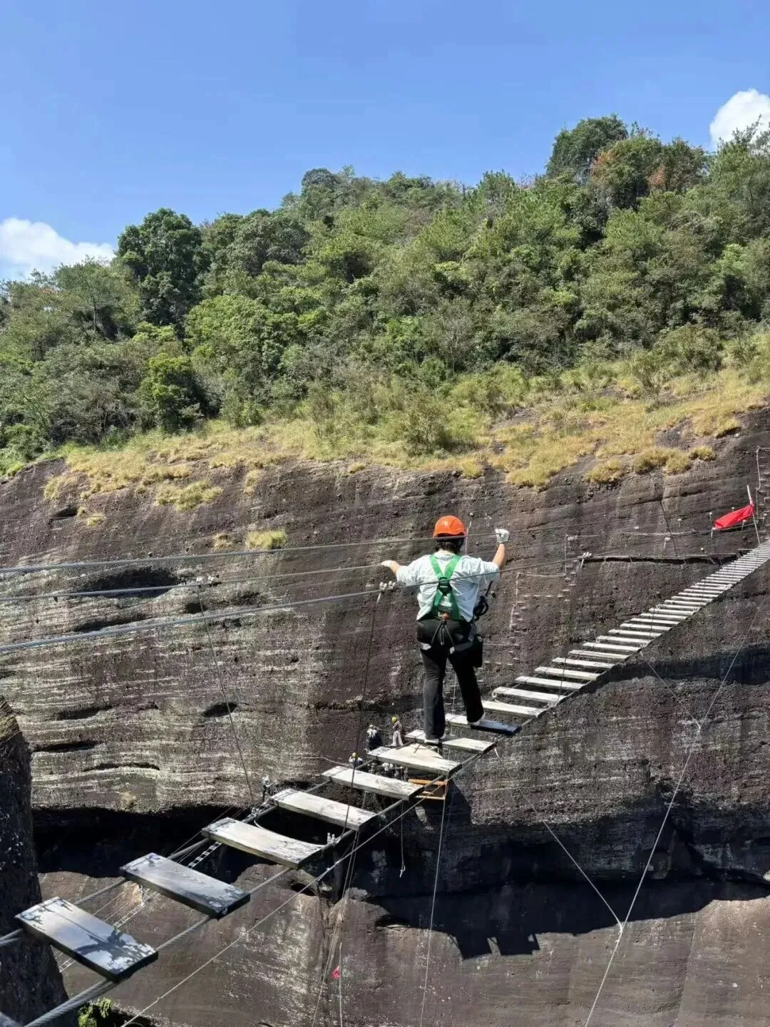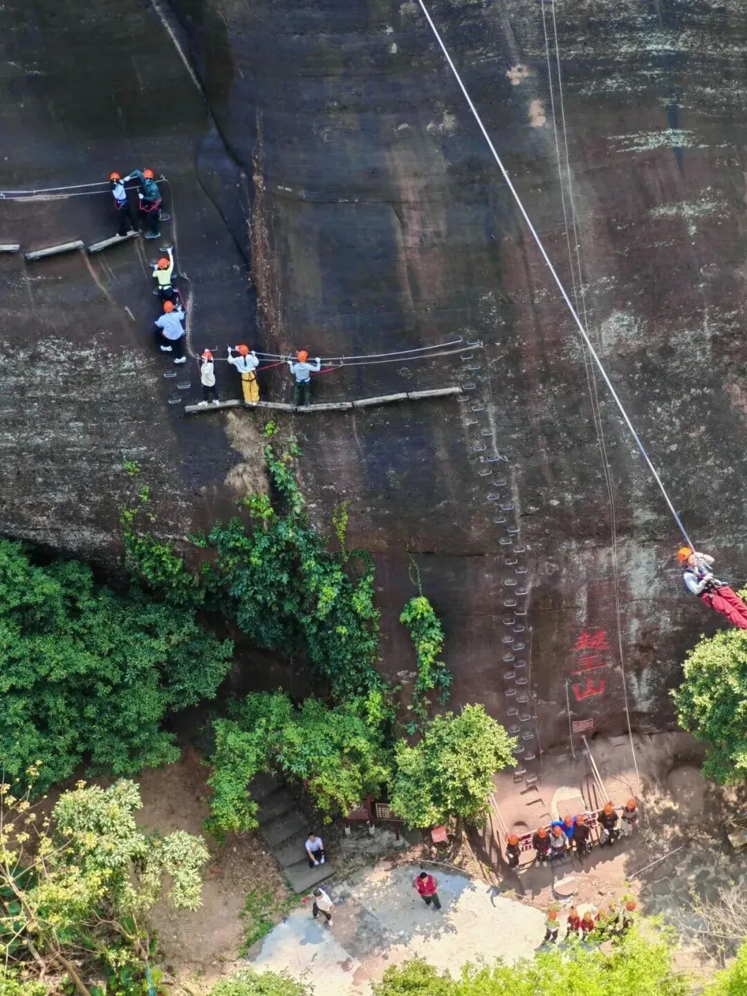 完成越王山悬崖上的探险之旅