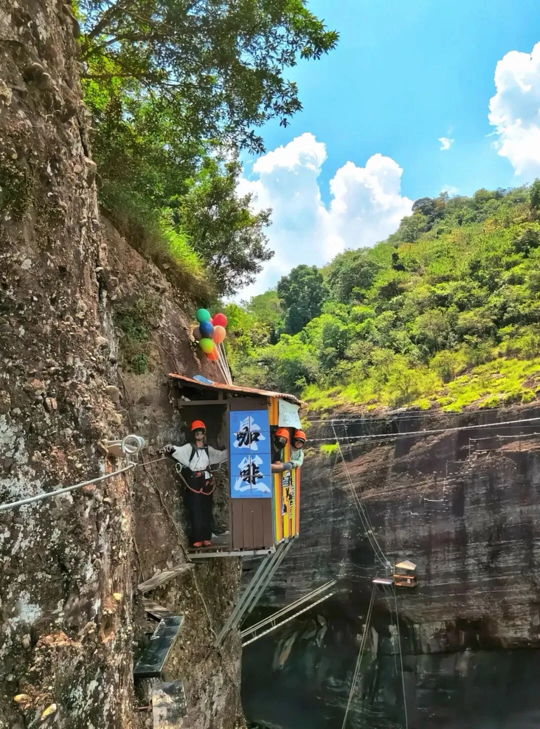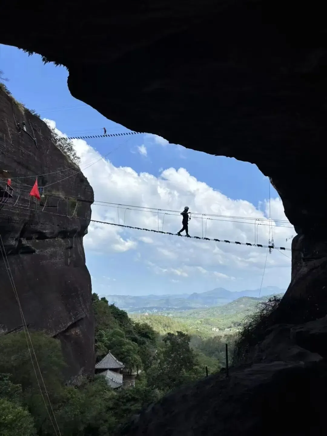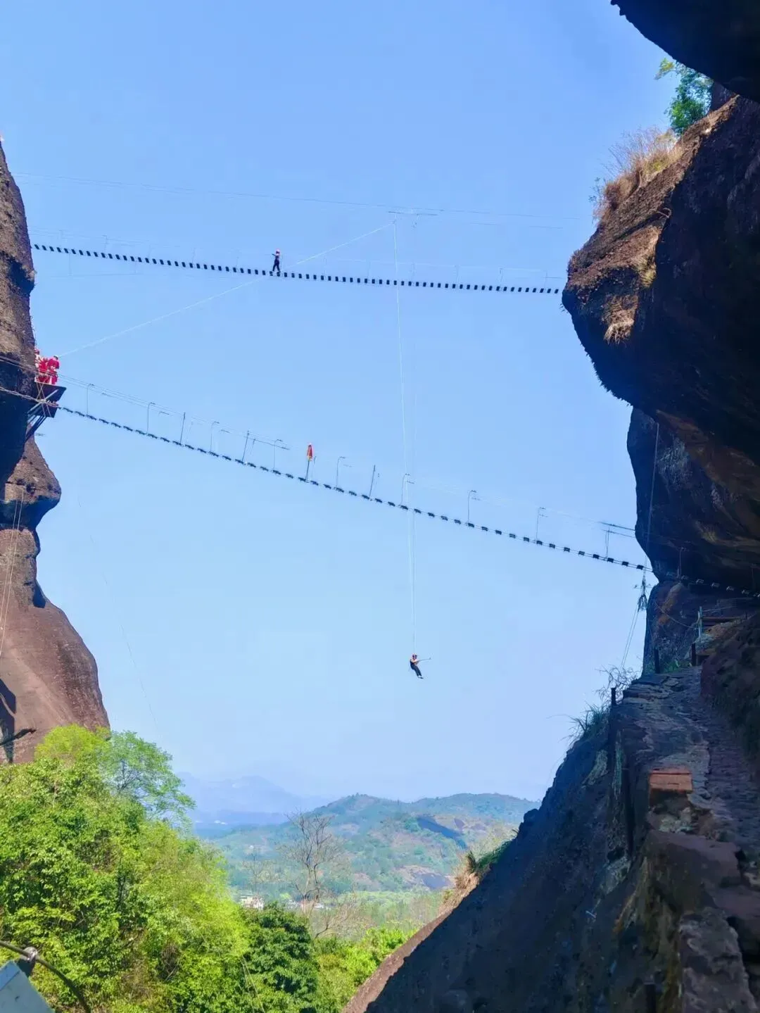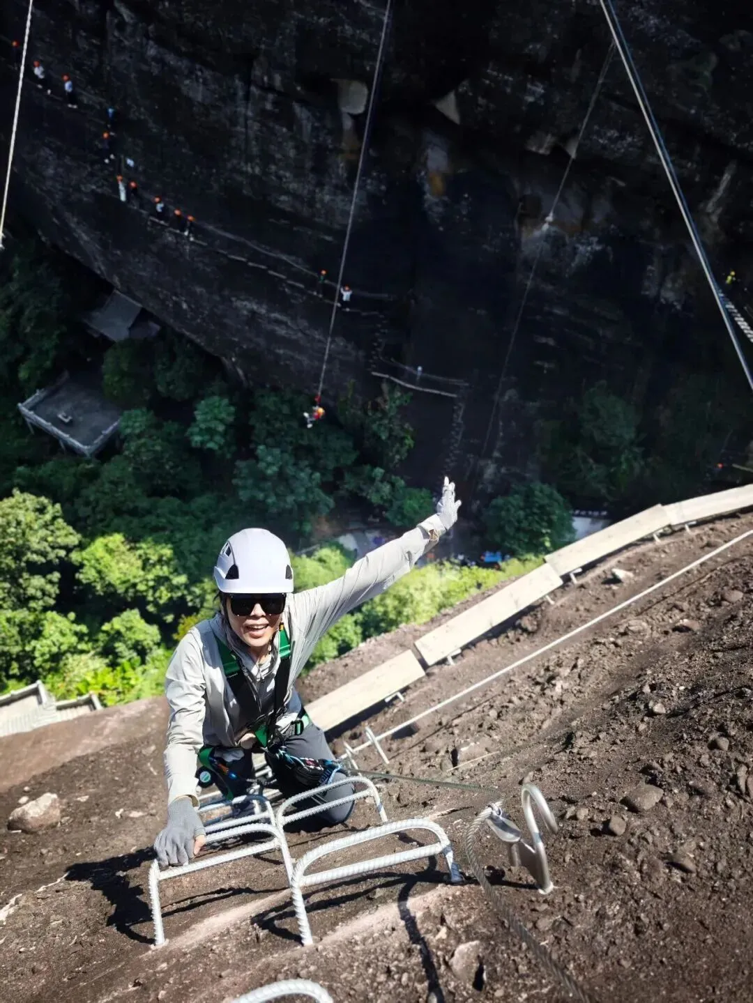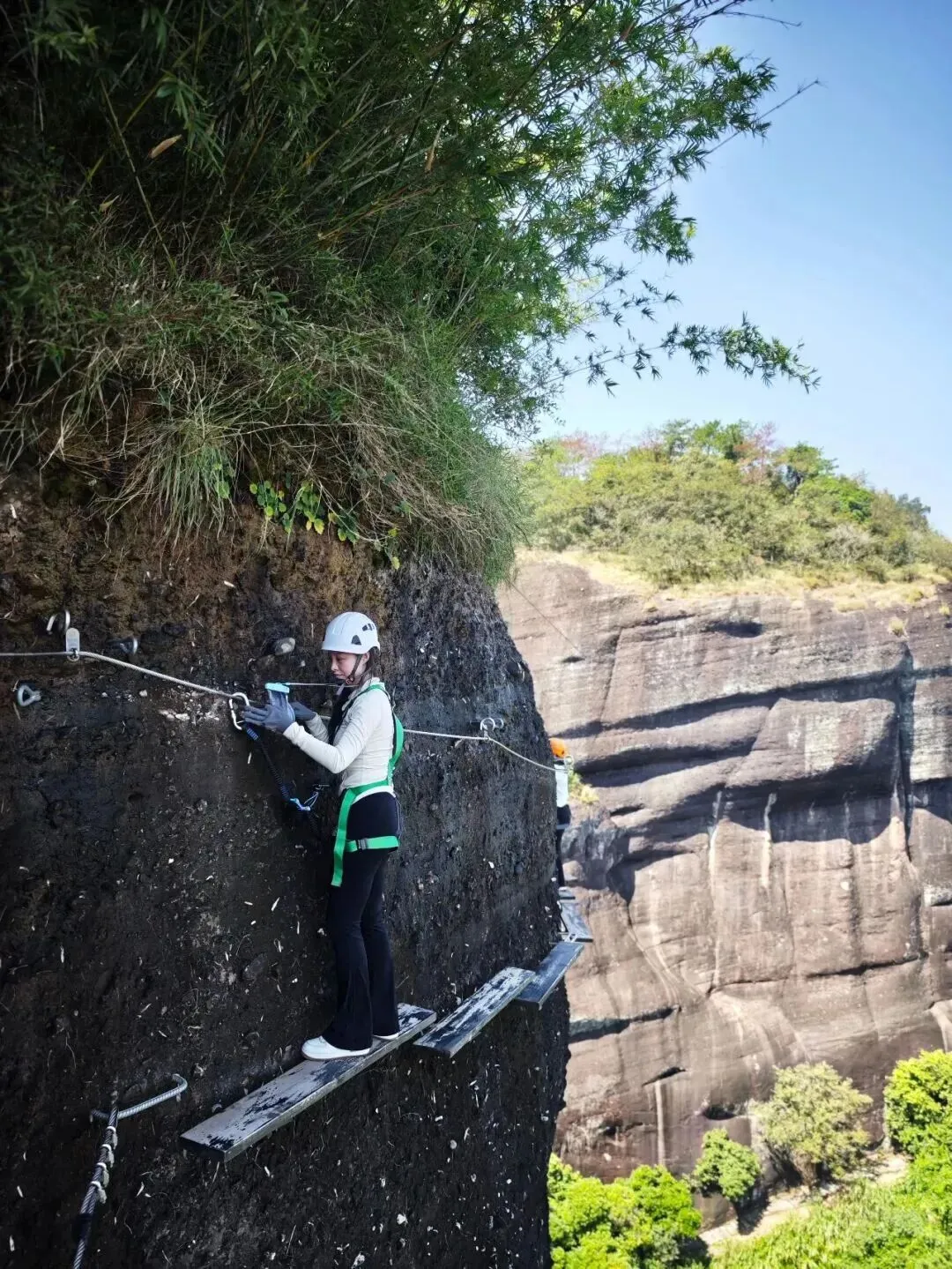 完成越王山悬崖上的探险之旅