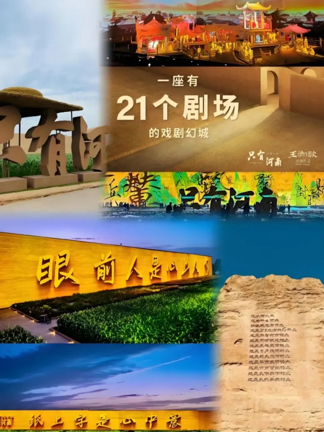 黄土色的巨型城廓,豁然打开的百米夯土墙,仿佛大地裂开,吐纳出五千年的叹息与辉煌。这里不是一座城,而是一座“幻城”。它以戏剧为砖瓦,以灯光为笔墨,在时空的棋盘上重演河南的史诗。在这里,你将不再是一个旁观者,而是走入一场关于粮食、传承、抉择的宏梦,在李家村茶铺的烟火里,在火车站台的抉择前,在覆斗书场的月色下,亲历这片土地最深沉的脉搏与浪漫。