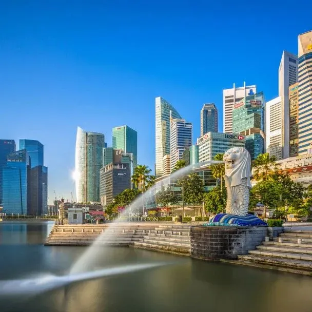 鱼尾狮是新加坡的标志 最经典的是对喷泉错位打卡 张着嘴去接水喝,伸出手来迎接财神