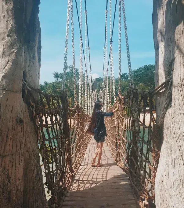 穿过网红吊桥抵达亚洲大陆的最南端 在沙滩边吹海风踢踢水 留下一段不可多得的浪漫回忆